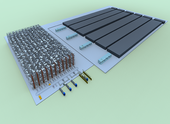 光伏產(chǎn)業(yè)在最近幾年時間里得到飛速發(fā)展,可分為光伏原材料如多晶硅、玻璃等以及光伏組件。大多數(shù)光伏產(chǎn)品是以整托形式出入庫,其重量較重,尺寸較大,且存儲量一般較大,給自動化物流設(shè)備帶來一定的挑戰(zhàn)。